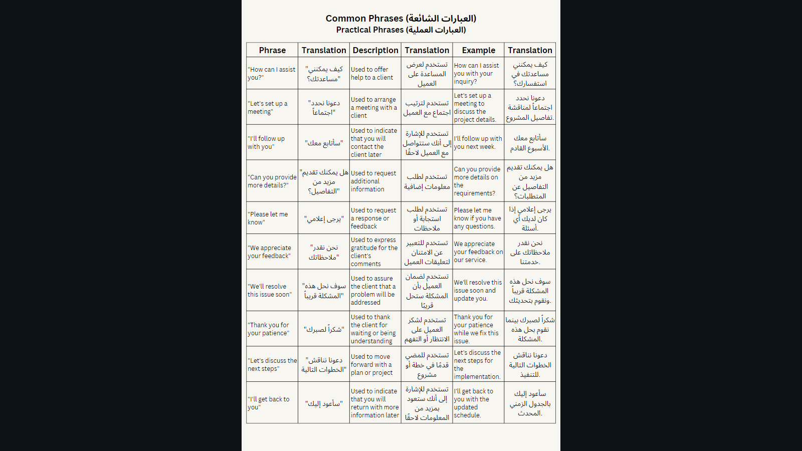 التحدث بثقة مع العملاء: تعلم كيفية استخدام العبارات والجمل التي تساعدك في بناء علاقات قوية مع عملائك.