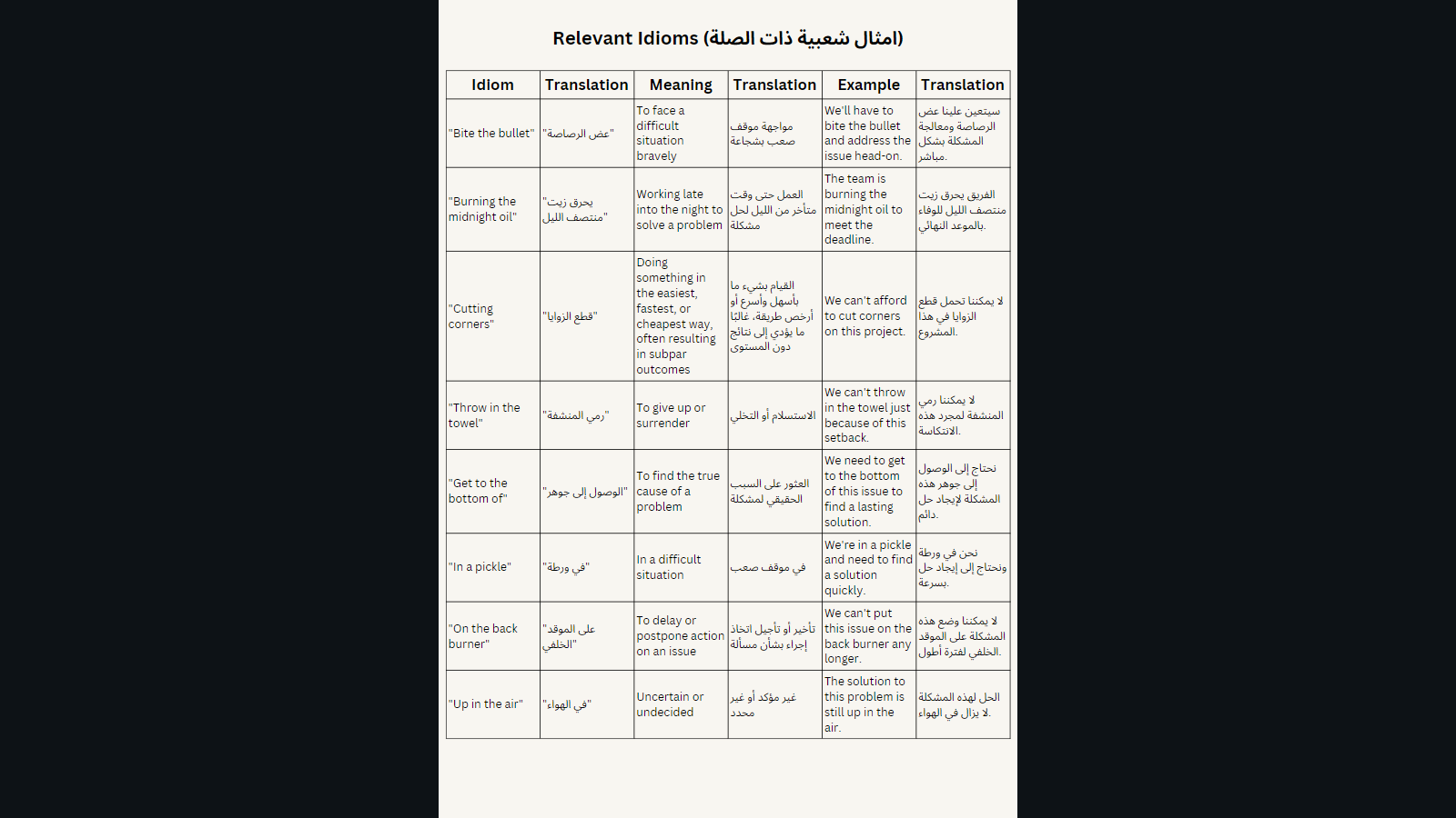 في عالم الأعمال اليوم، تعد اللغة الإنجليزية جسرًا مهمًا للتواصل الفعّال مع الزملاء والعملاء على حد سواء. إذا كنت تجد صعوبة في فهم المصطلحات والعبارات الثقافية المستخدمة في المحادثات اليومية أو الكتابة المهنية،