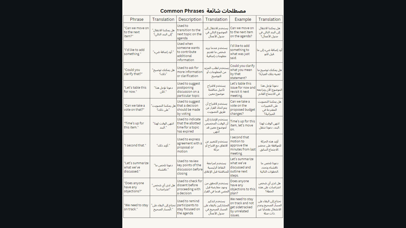 إتقان الحديث في الاجتماعات: فهم كيفية التعبير عن آرائك بثقة ومهنية، سواء كنت تقدم فكرة جديدة أو تناقش مشكلات الفريق.